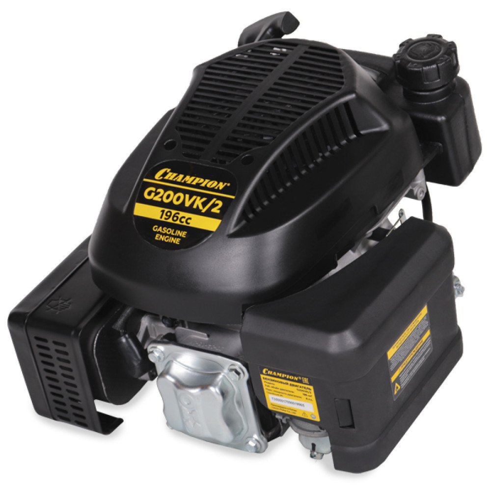 Двигатель Champion G200VK/2 – самый мощный четырехтактный мотор с вертикальным валом в линейке Champion. Двигатель выдает мощность в 6 лошадиных сил, благодаря чему его можно использовать на самоходных роторных газонокосилках с большим захватом или на культиваторах с червячным редуктором и весом до 50 кг. Двигатель верхнеклапанный, поэтому он при работе производит намного меньше шума и потребляет меньше топлива. Благодаря чугунной гильзе цилиндра, двигатель более устойчив к перегреву, а так же имеет приличный для своей стоимости ресурс. Запуск мотора производится продергиванием шнура (кик-стартер). Благодаря электронной системе зажигания, запуск производится легко, с одного или двух рывков. Для удобства запуска непрогретого мотора имеется двухпозиционная воздушная заслонка.