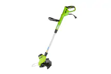 Легкий аккумуляторный триммер с прочным алюминиевым стержнем и простой регулировкой по высоте. Он имеет легко заменяемую головку для лески, которую можно легко наклонить для стрижки краев газона.