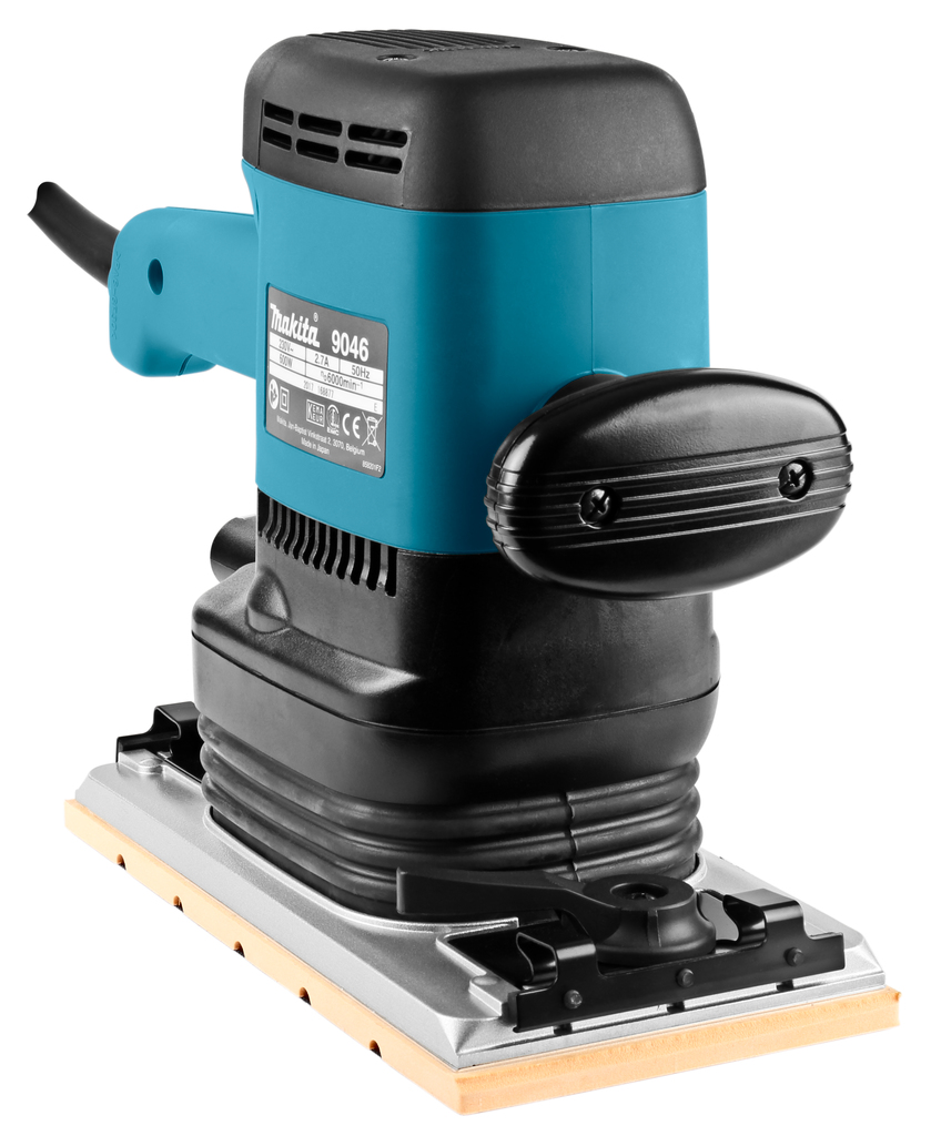 Вибрационная шлифовальная машина 115 х 229 мм с мощным двигателем и системой снижения вибрации. Вибрационная шлифмашина Makita 9046 оснащена системой демпфирования, которая снижает уровень вибрации. Мощный двигатель увеличивает толщину снимаемого слоя. Дополнительная рукоятка предназначена для надежного и комфортного удержания шлифмашины.