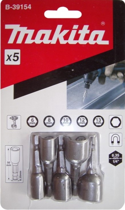 Набор магнитных торцевых головок 6-13, 50 мм, 1/4, E-Form, 5 шт Makita B-39154