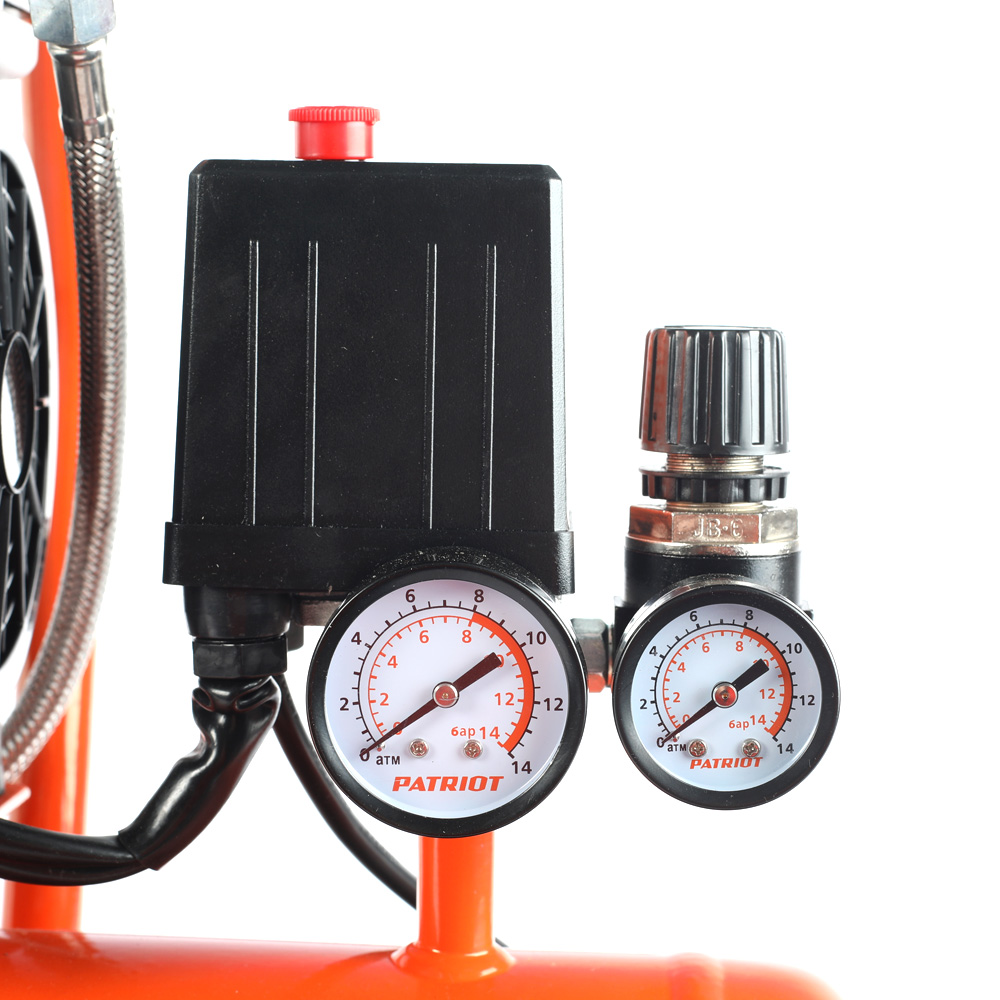 • Регулировка и контроль давления в ресивере и на выходе при помощи двух манометров