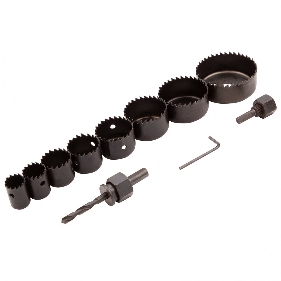Кольцевые пилы - 1 шт, шестигранный ключ - 1 шт, центрирующее сверло - 1 шт