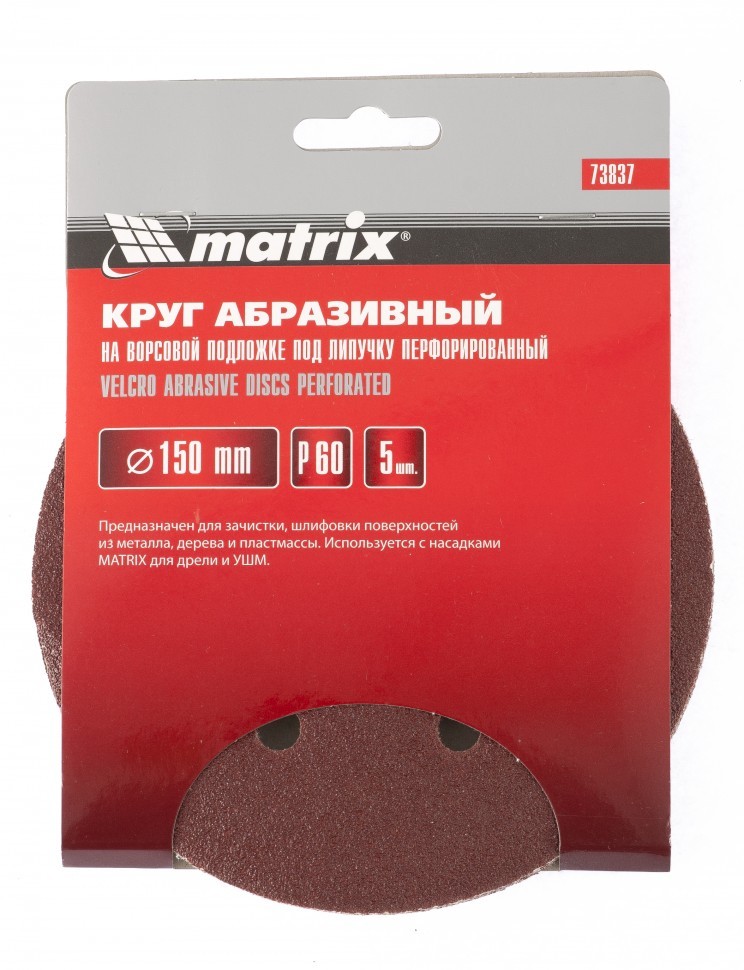 Круг абразивный на ворсовой подложке под липучку, перфорированный, P 120, 150 мм, 5 шт Matrix 73841