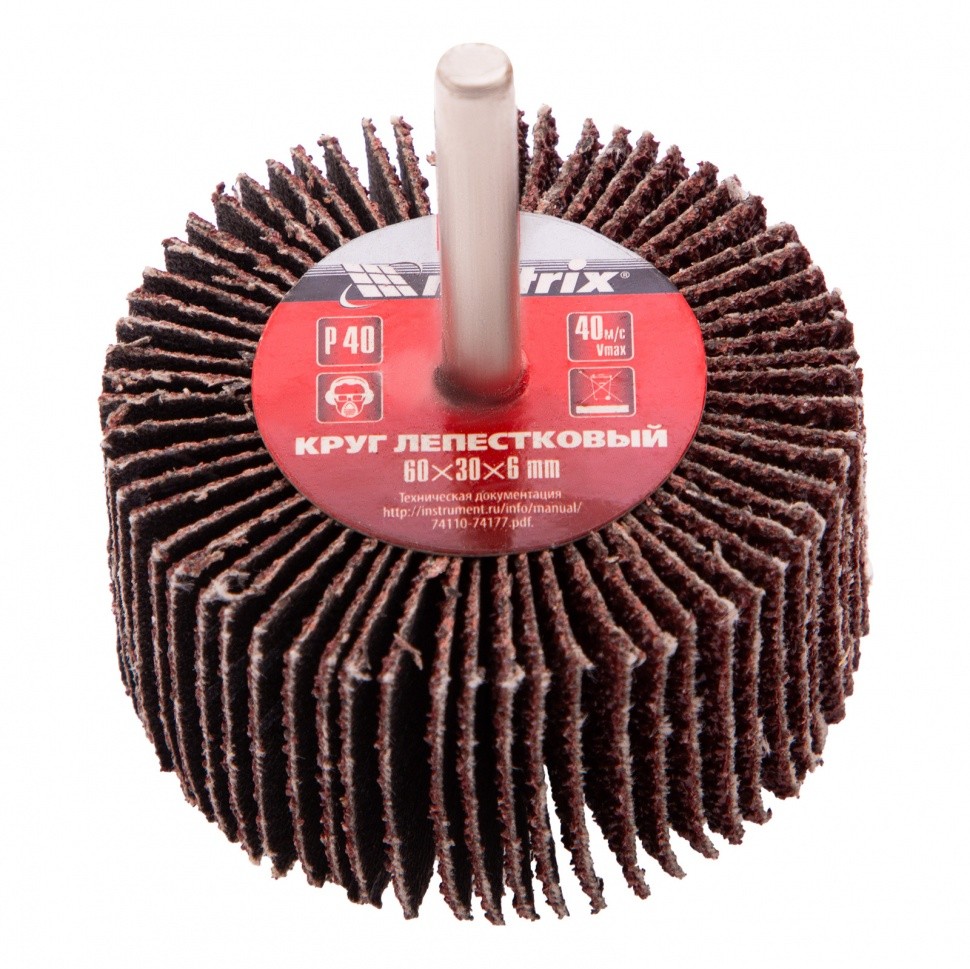 Круг лепестковый для дрели, 60 х 30 х 6 мм, P 40 Matrix 74120