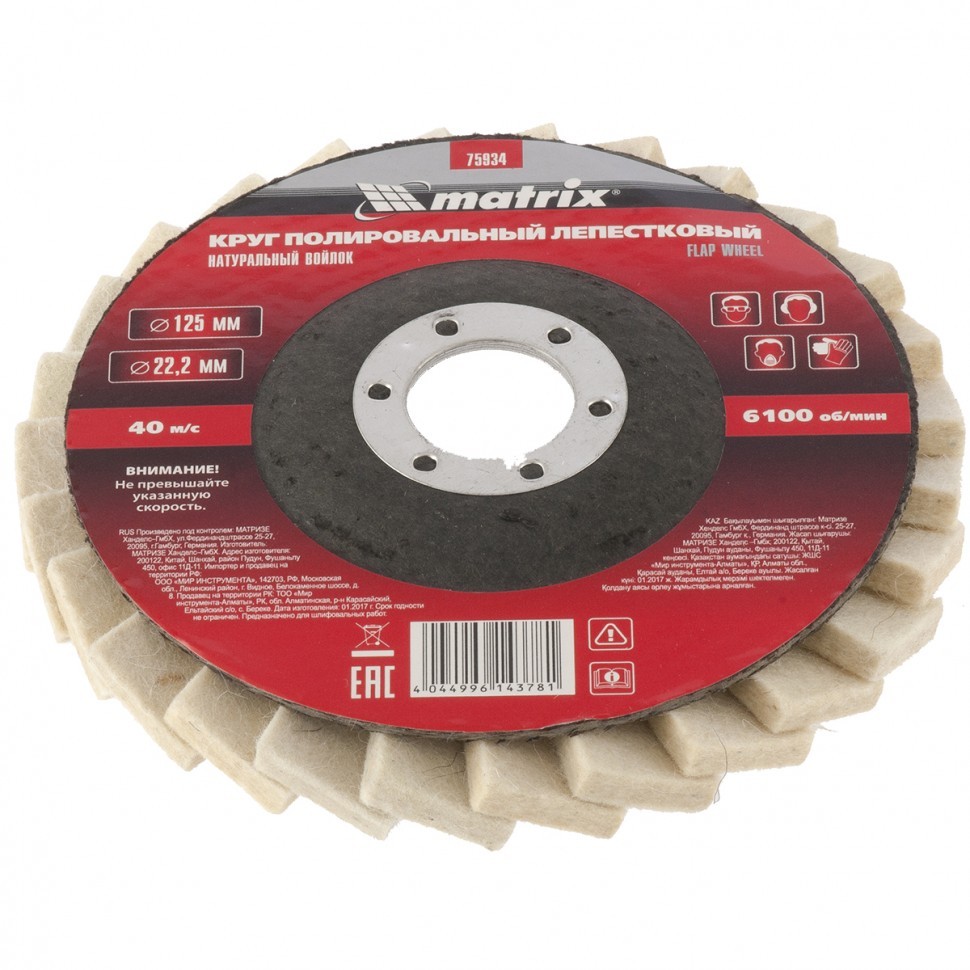 Круг полировальный лепестковый из натурального войлока 125 х 22.2 мм Matrix 75934