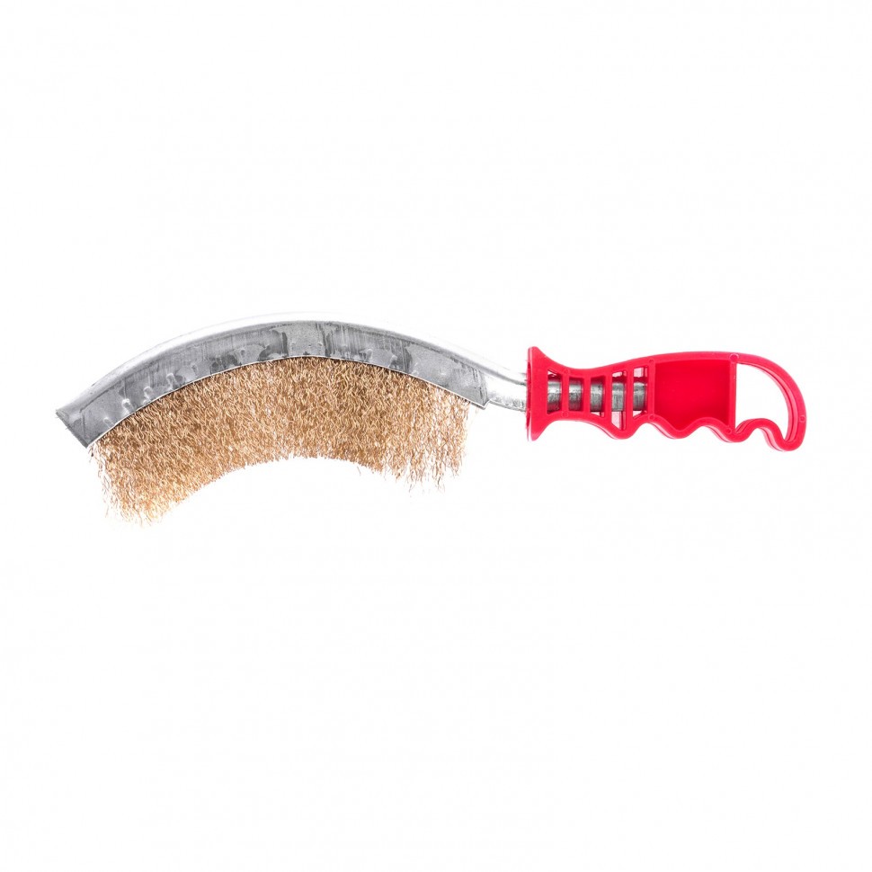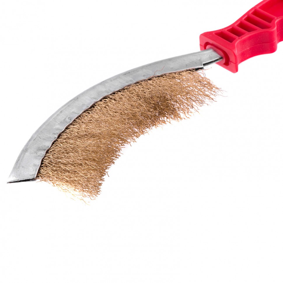 Изогнутая металлическая щетка Matrix 74839 с пластиковой ручкой очищает металлические, деревянные и другие поверхности от ржавчины, различных загрязнений и остатков лакокрасочных покрытий. Изогнутой щеткой удобно обрабатывать цилиндрические изделия, например, трубы. Инструмент пригодится во время строительства или ремонта, будет полезен в гараже, на производстве или в быту.