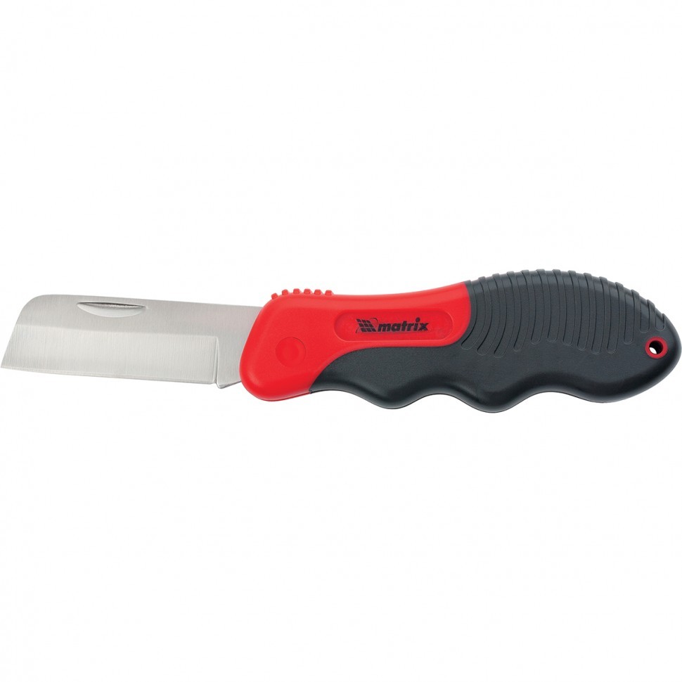 Нож электрика, складной, прямое лезвие, эргономичная двухкомпонентная рукоятка Matrix 78987