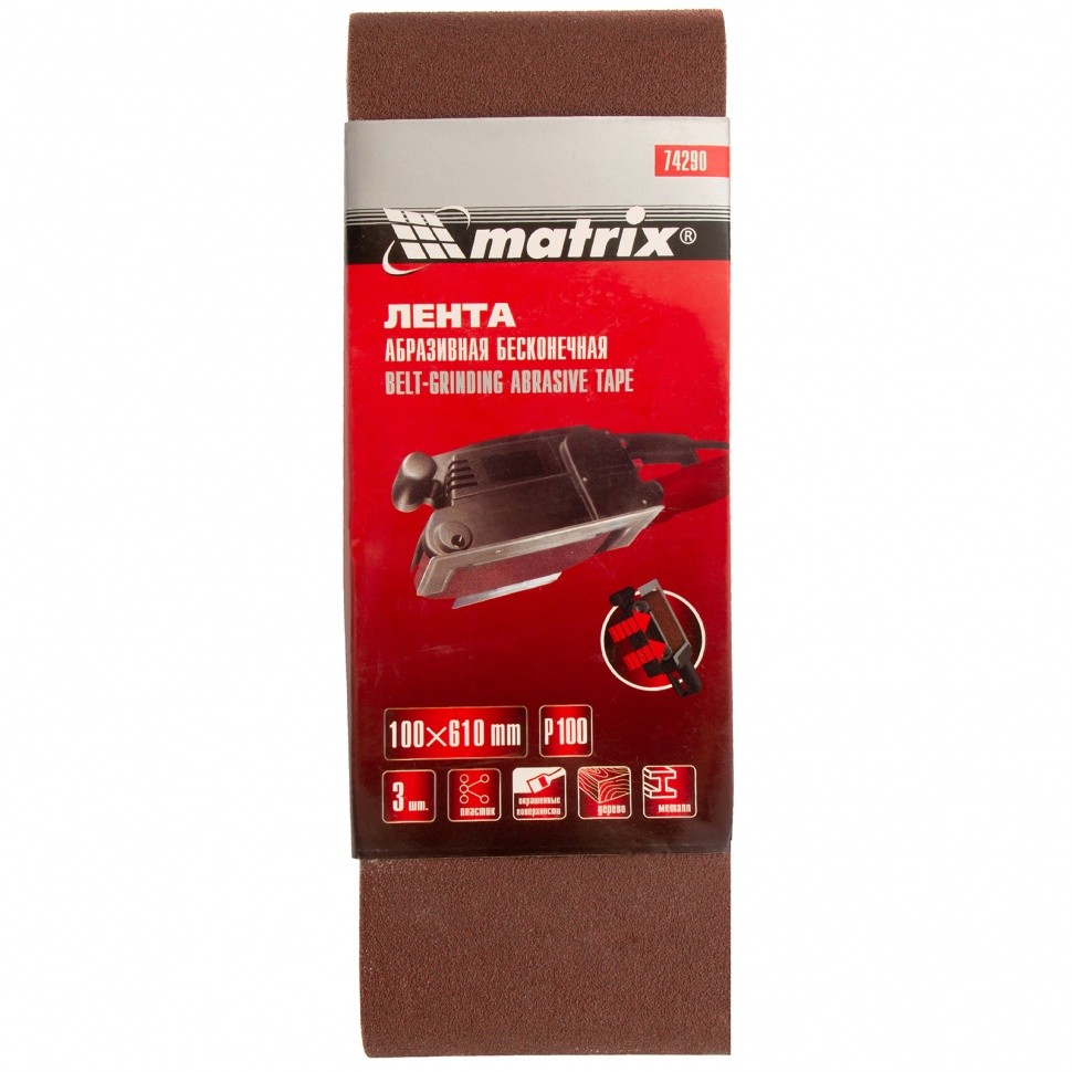 Лента абразивная бесконечная, P 100, 100 х 610 мм, 3 шт Matrix 74290