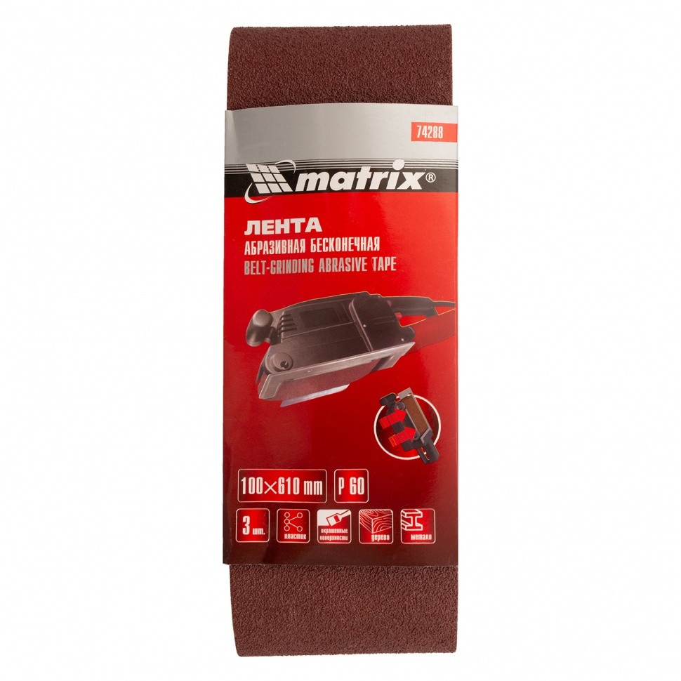 Лента абразивная бесконечная, P 60, 100 х 610 мм, 3 шт Matrix 74288