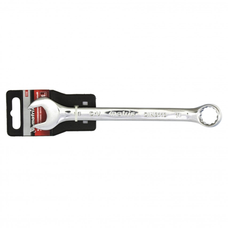 Ключ комбинированный, 16 мм, CrV, полированный хром Matrix 15160