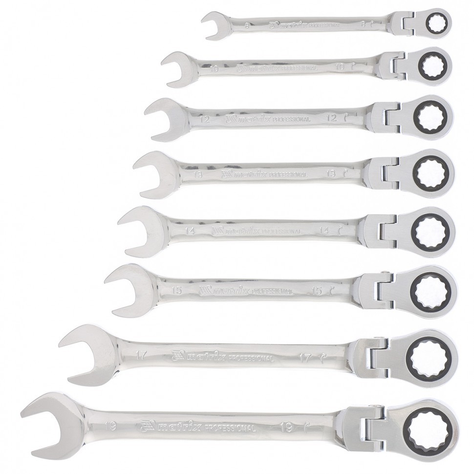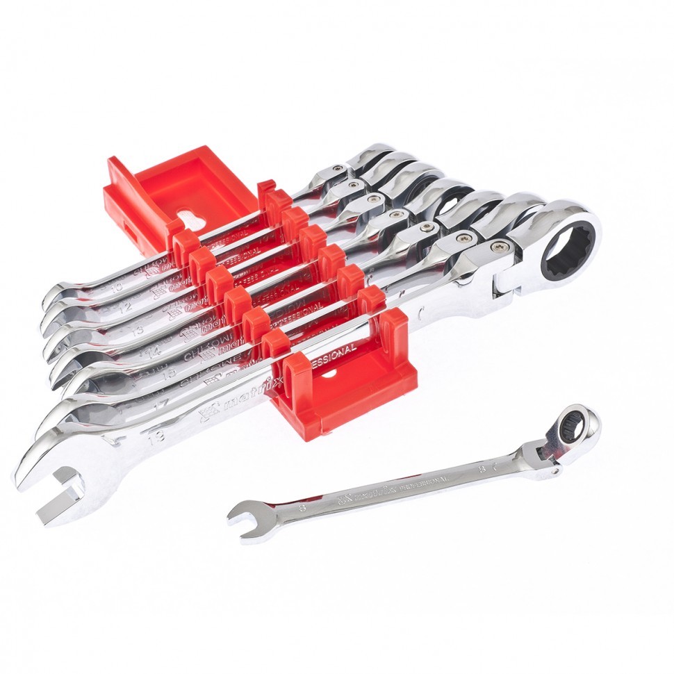 Набор ключей комбинированных, трещеточных шарнирных 8 шт Matrix 14898