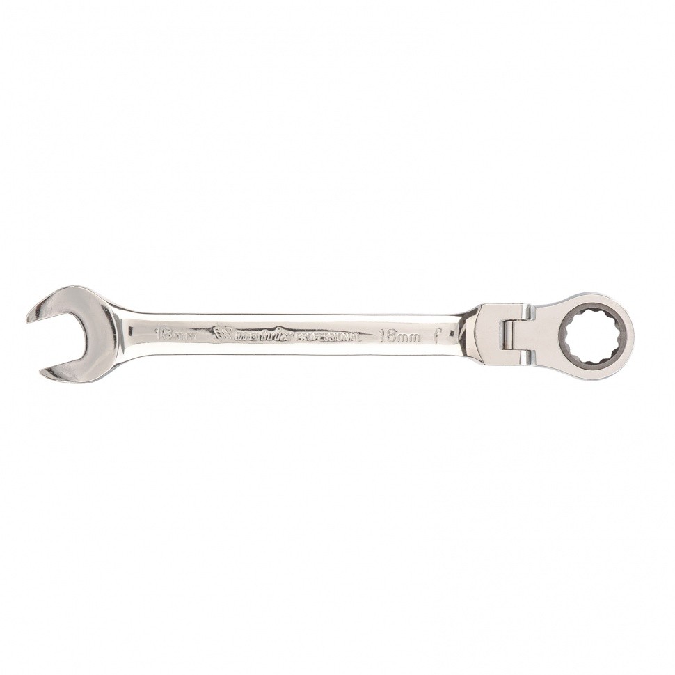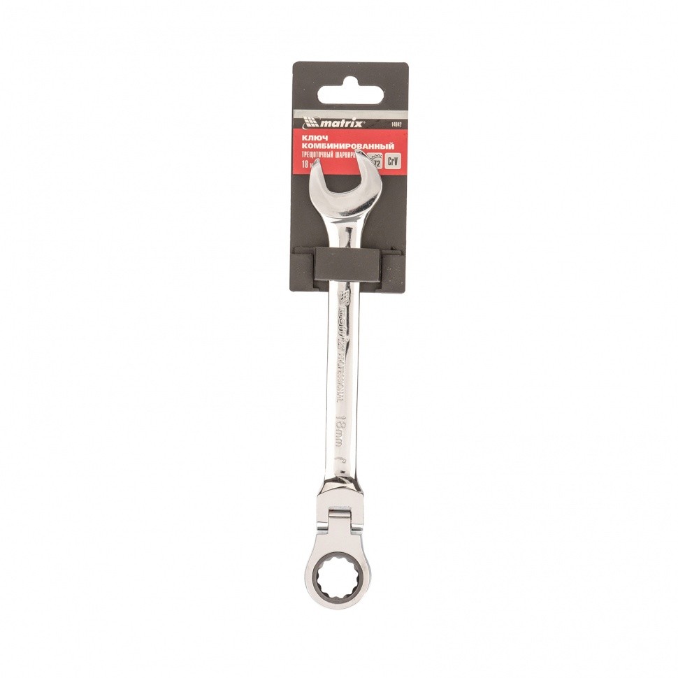 Ключ комбинированный трещоточный, 18 мм, CrV, шарнирный, зеркальный хром Matrix 14842