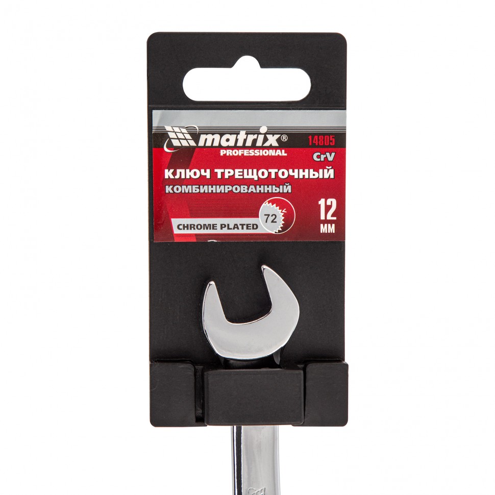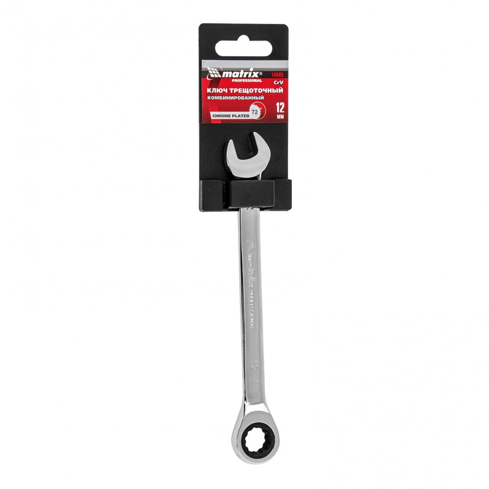 Ключ комбинированный трещоточный, 12 мм, CrV, зеркальный хром Matrix Professional 14805