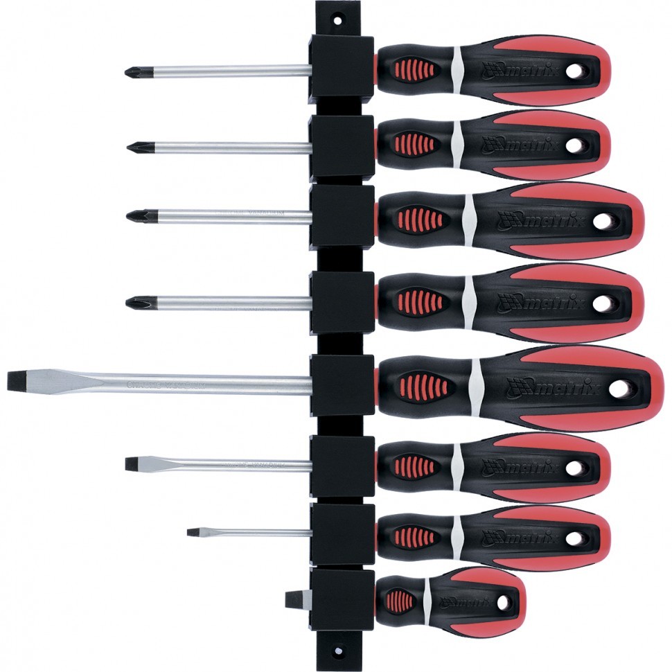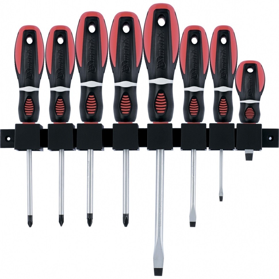 Набор отверток Matrix «Era» 13380 из 8 шт., из стали CrV, с 3-компонентными рукоятками, используется для закручивания и откручивания резьбовых крепежей со шлицами PH и SL. При этом направлять отвертку с насаженным крепежом можно одной рукой, поскольку рабочая часть каждой отвертки намагничена. Набор рекомендован для профессионального применения и будет полезен во время ремонта оборудования и бытовой техники, а также при сборке мебели.