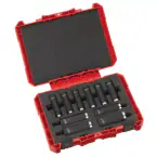 Набор торцевых головок Matrix 13536 с присоединительным квадратом 3/4 дюйма и 12-гранным профилем используется для работы с резьбовыми крепежами размерами от 19 до 50 мм. Он применяется для ремонта и обслуживания автобусов и грузовых автомобилей.