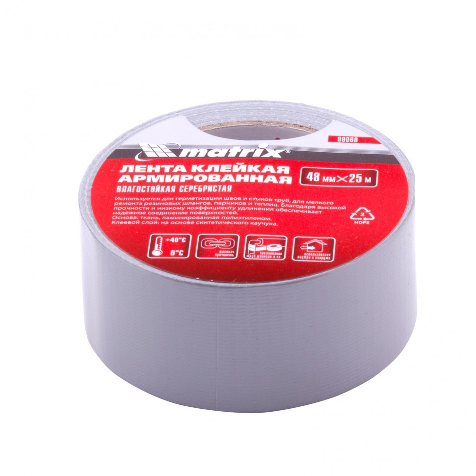 Лента армированная, влагостойкая, 48 мм х 25 м, серебристая Matrix 89068