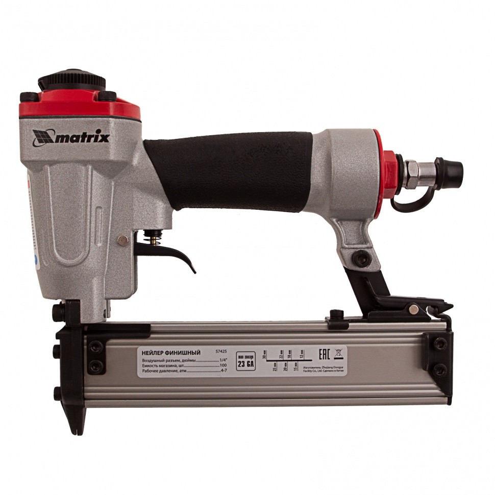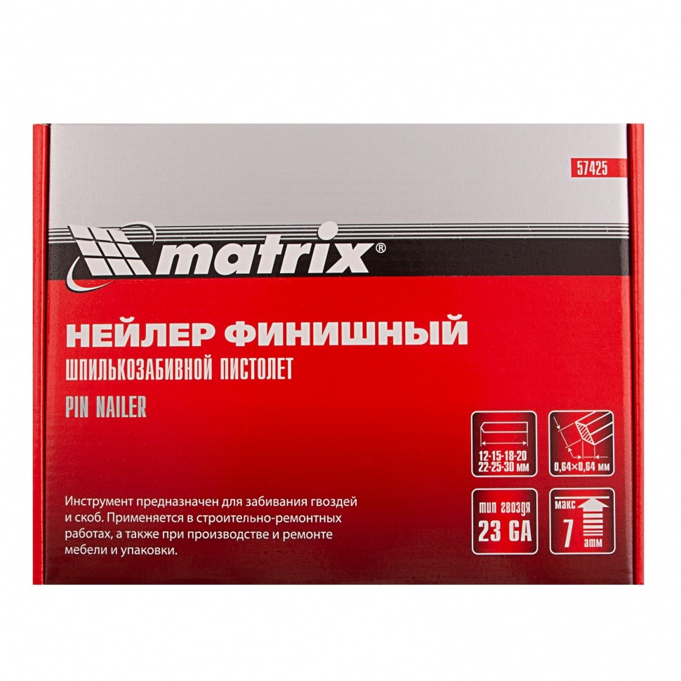 Нейлер финишный, шпилькозабивной пистолет, пневматический, гвоздь 23GA D 0.64 мм длина 10-30 мм Matrix 57425