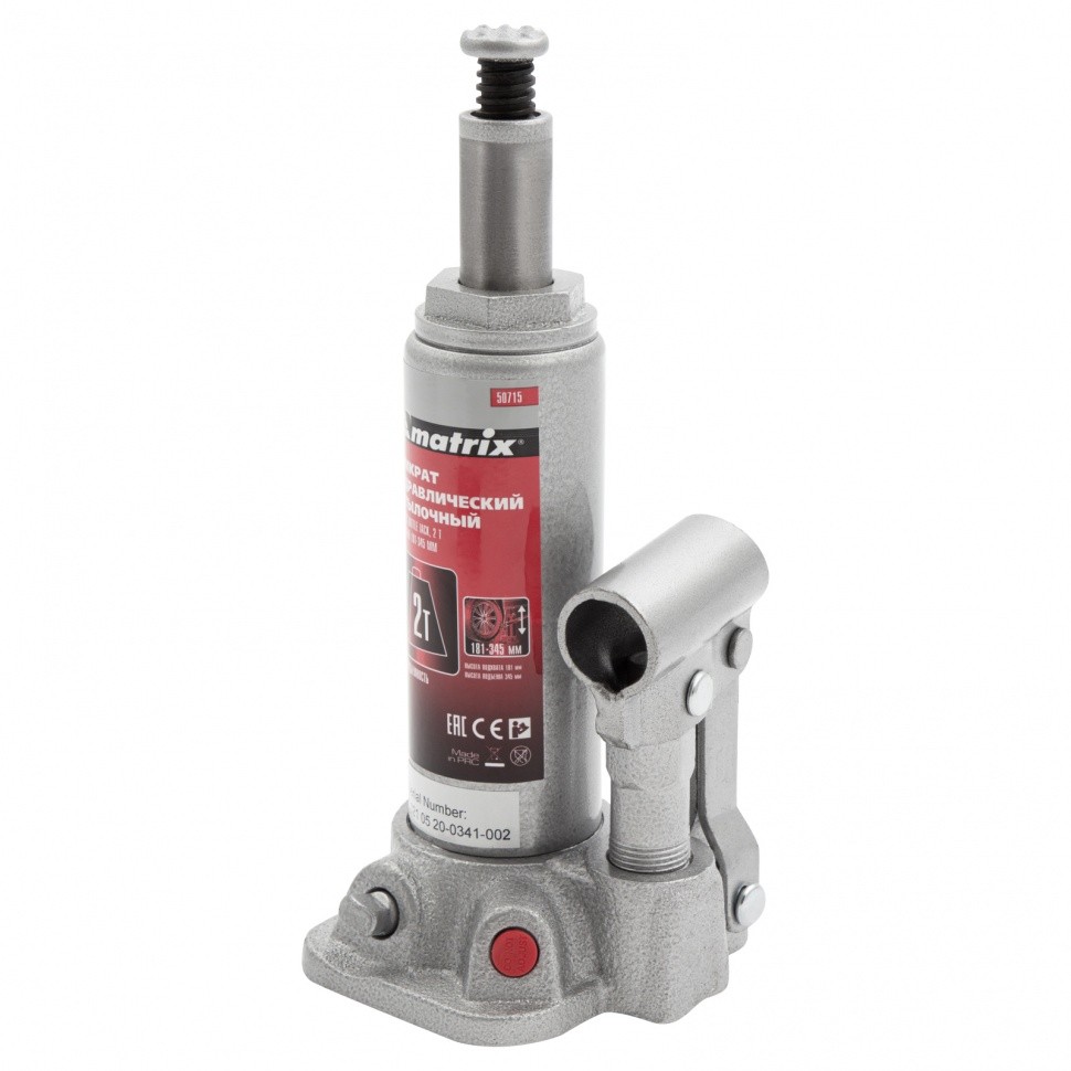 Домкрат гидравлический бутылочный, 2 т, высота подъема 181-345 мм Matrix 50715
