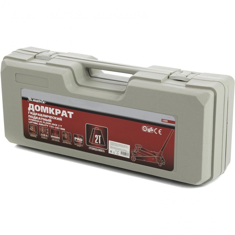 Домкрат гидравлический подкатный, 2 т, высота подъема 135-385 мм, в пластиковый кейсе Matrix 51028