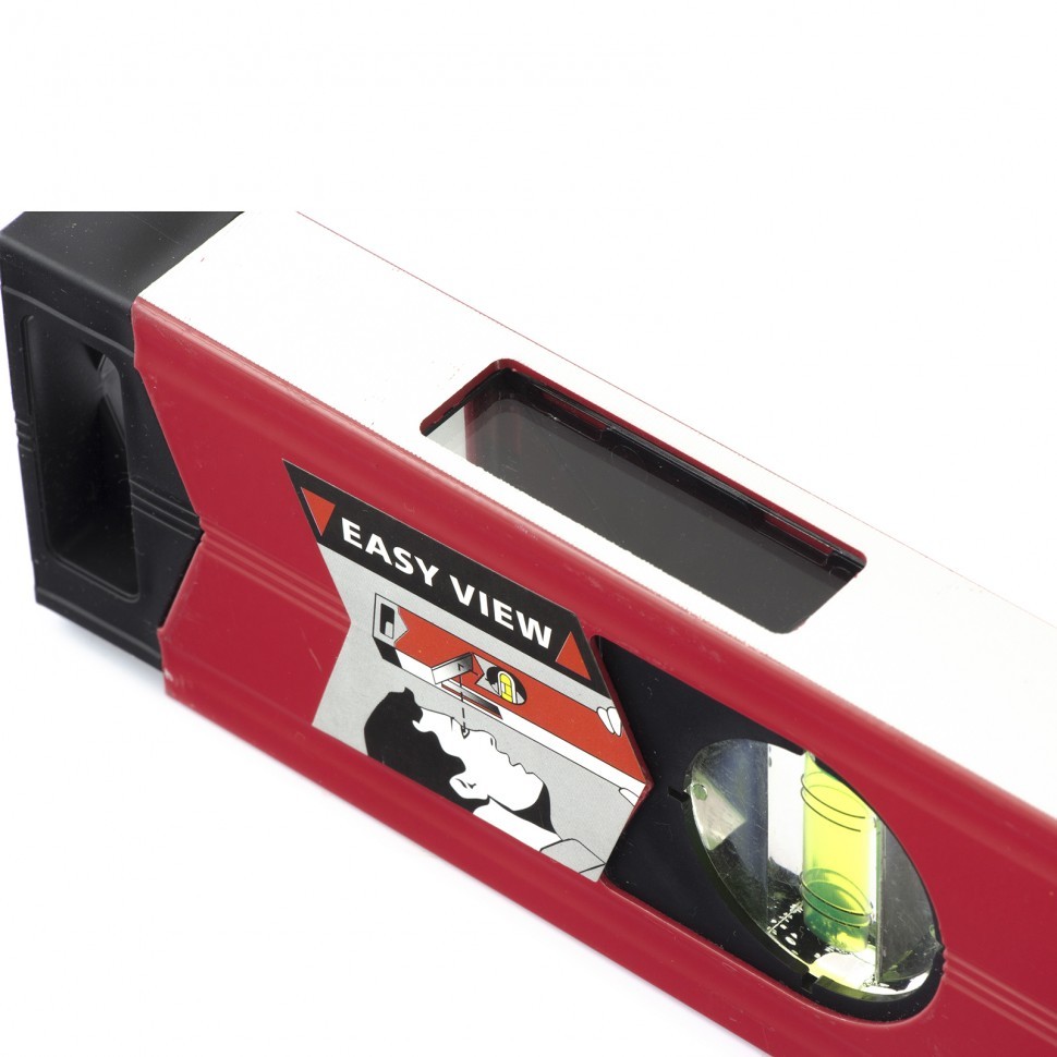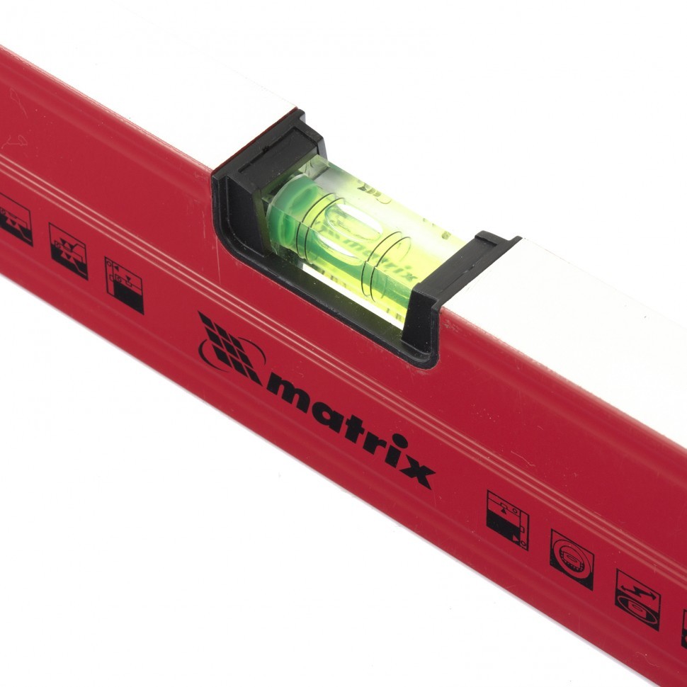 Алюминиевый магнитный уровень Matrix 34704 длиной 400 мм, усиленный, оснащен 3 глазками и одним зеркальным отражателем. С его помощью можно выявить отклонения от вертикали, горизонтали и угла 45 градусов. Встроенный зеркальный глазок повышает удобство работы, позволяя легко считывать показания.Для определения отклонения вертикали 90 градусов необходимо использовать пузырьковую ампулу только в верхнем положении уровня. Только базовая поверхность является рабочей (противоположная ампуле 180 градусов).