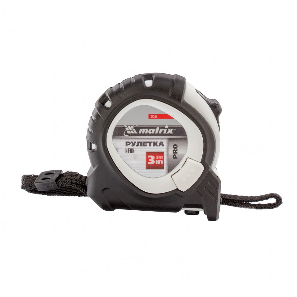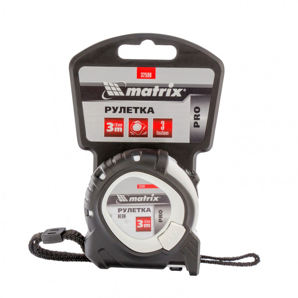 Рулетка Neon,3 м x 16 мм,обрезиненный корпус,3 фиксации,Pro Matrix 32590