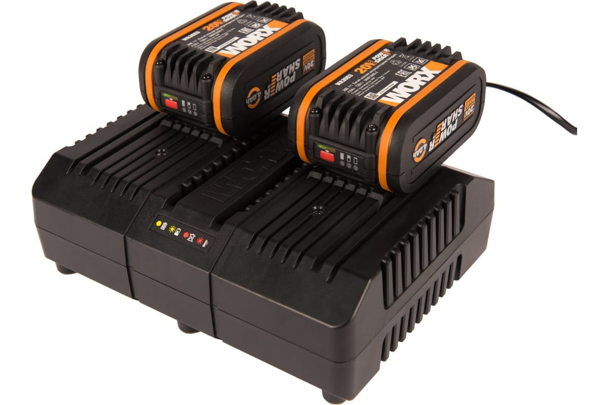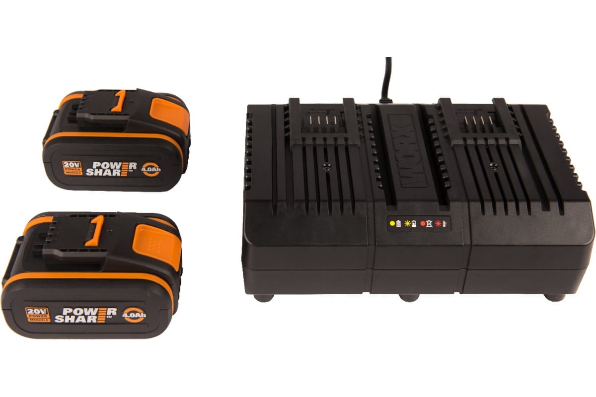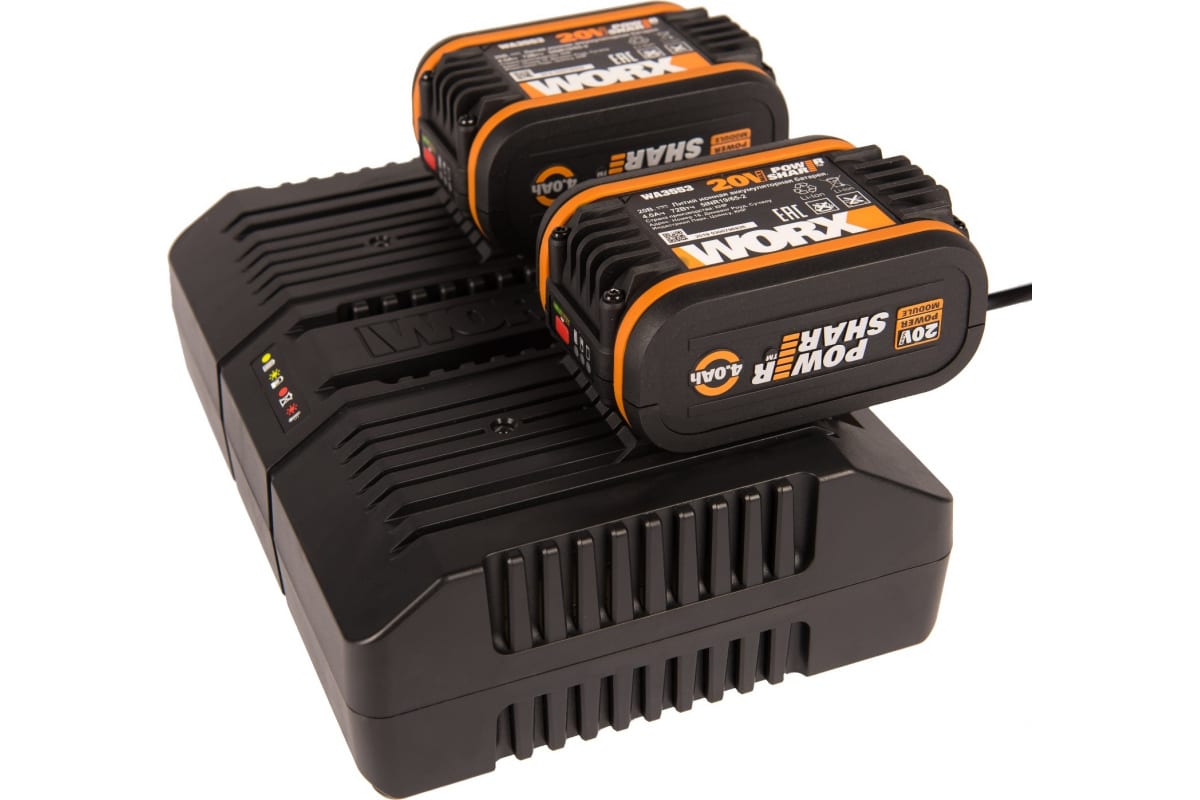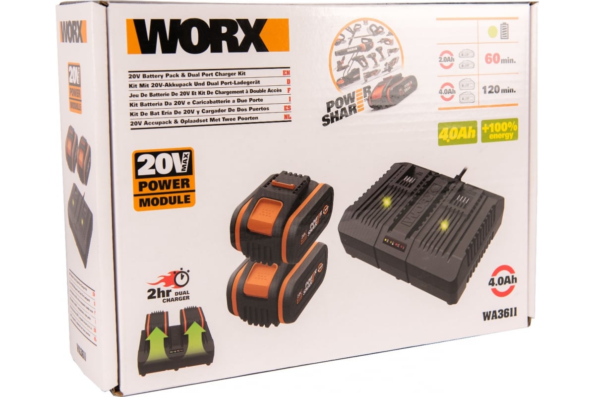 Комплект: Двойное Зарядное устройство WORX WA3883 + 2 АКБ 4.0 А/ч WA3611
