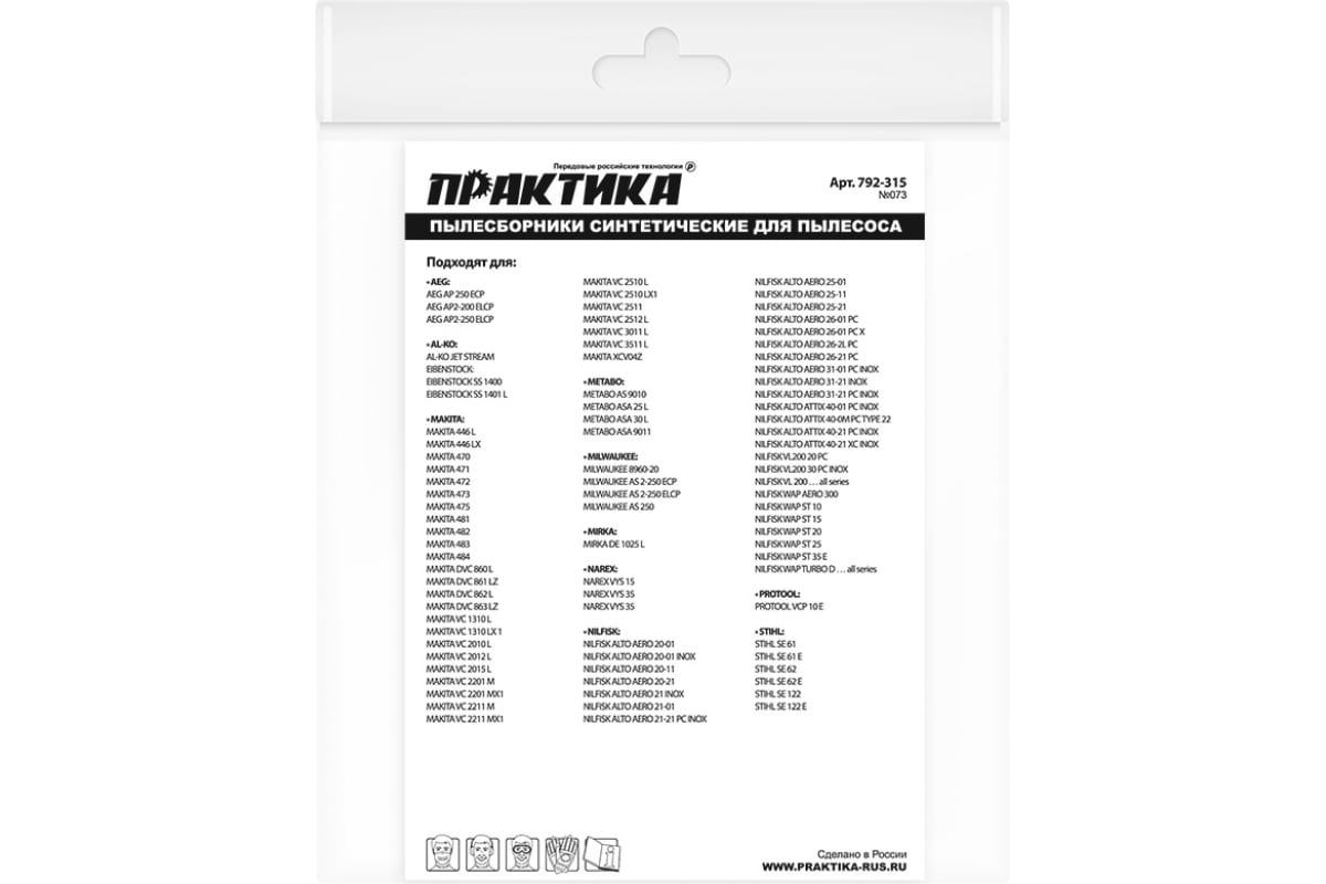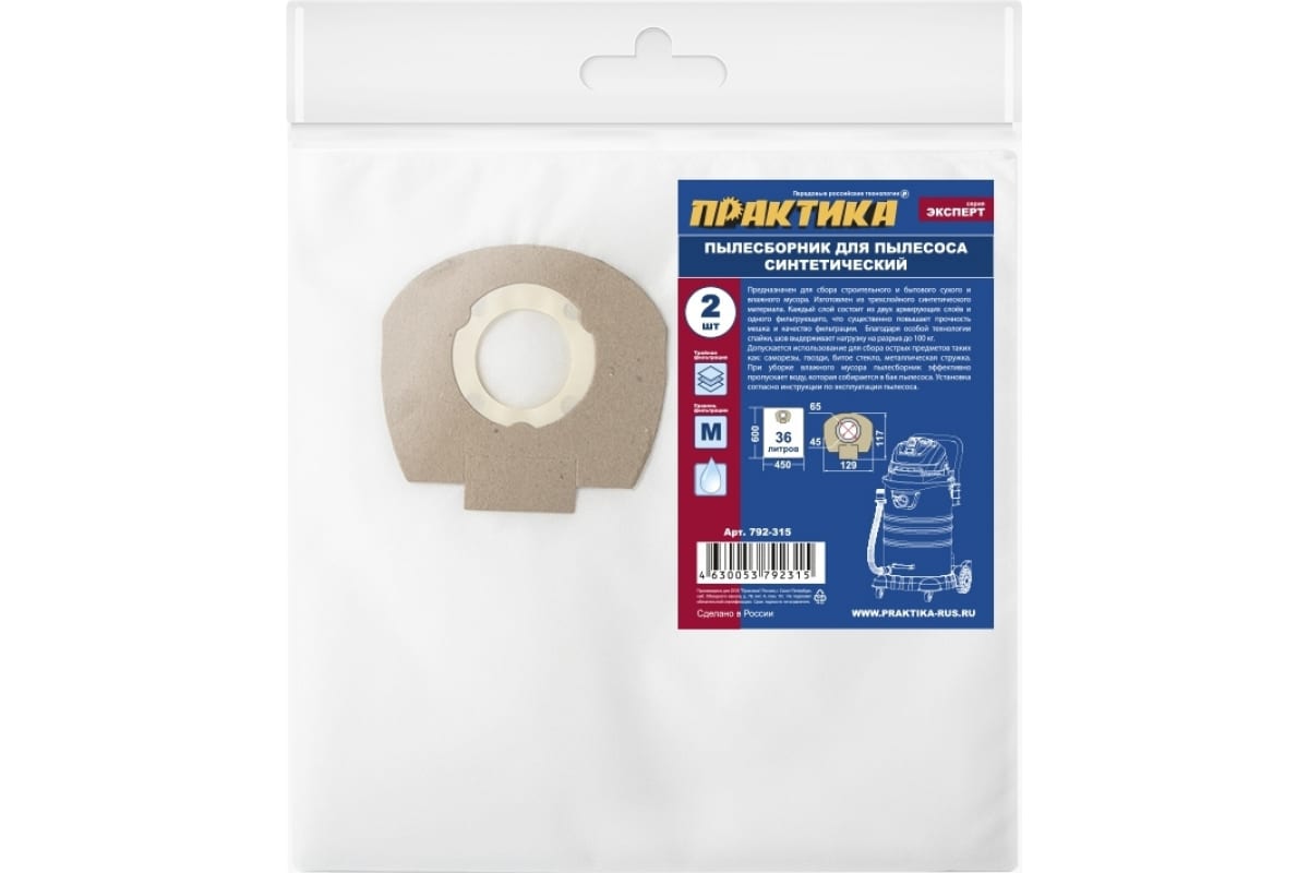 Мешки 36 л, синтетич., 2 шт для пылесосов Makita VC2512L, AEG, MAKITA, STIHL ПРАКТИКА 792-315
