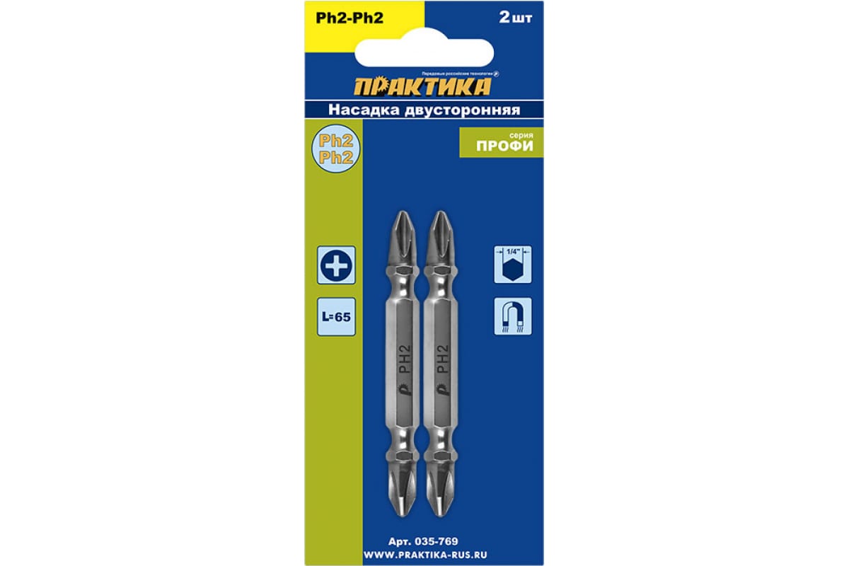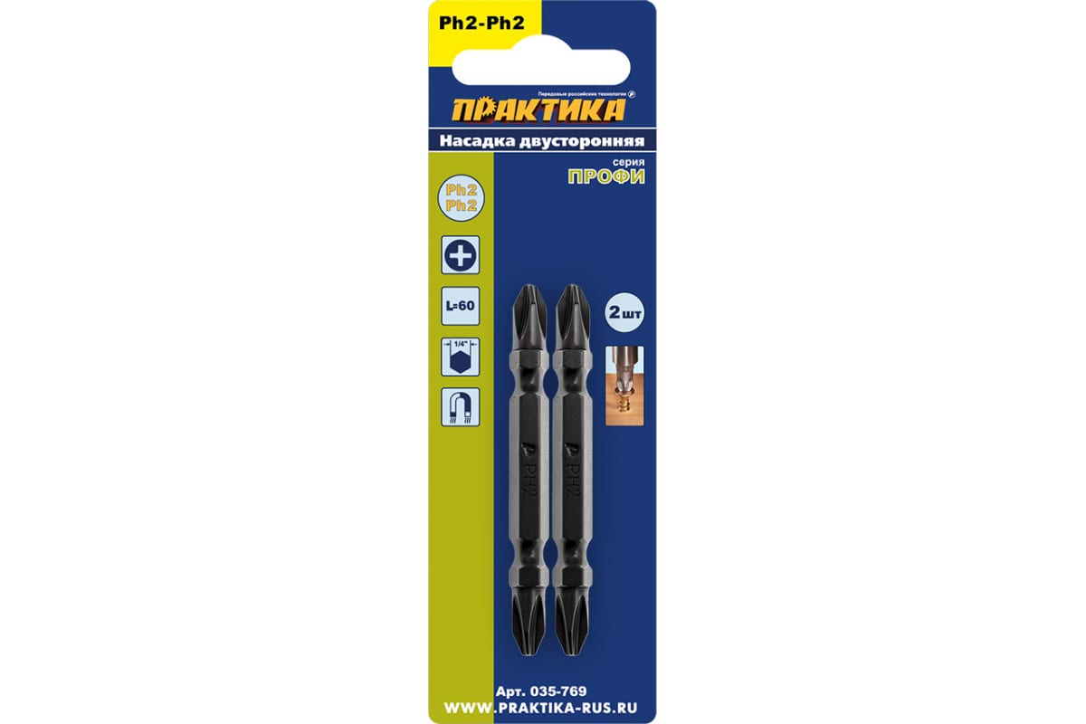 Бита двусторонняя PH2-PH2 Профи (2 шт; 60 мм) ПРАКТИКА 035-769