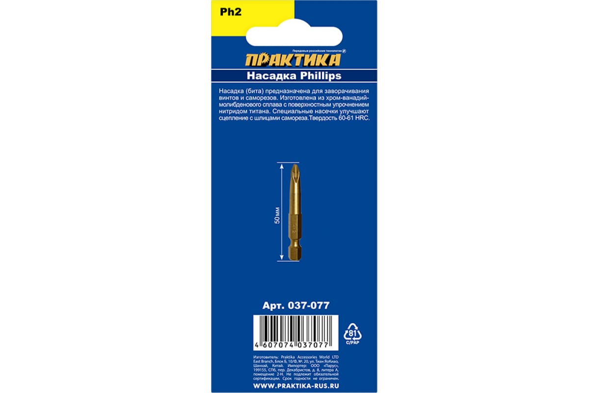 Бита PH-2 Эксперт (1 шт; 50 мм) ПРАКТИКА 037-077