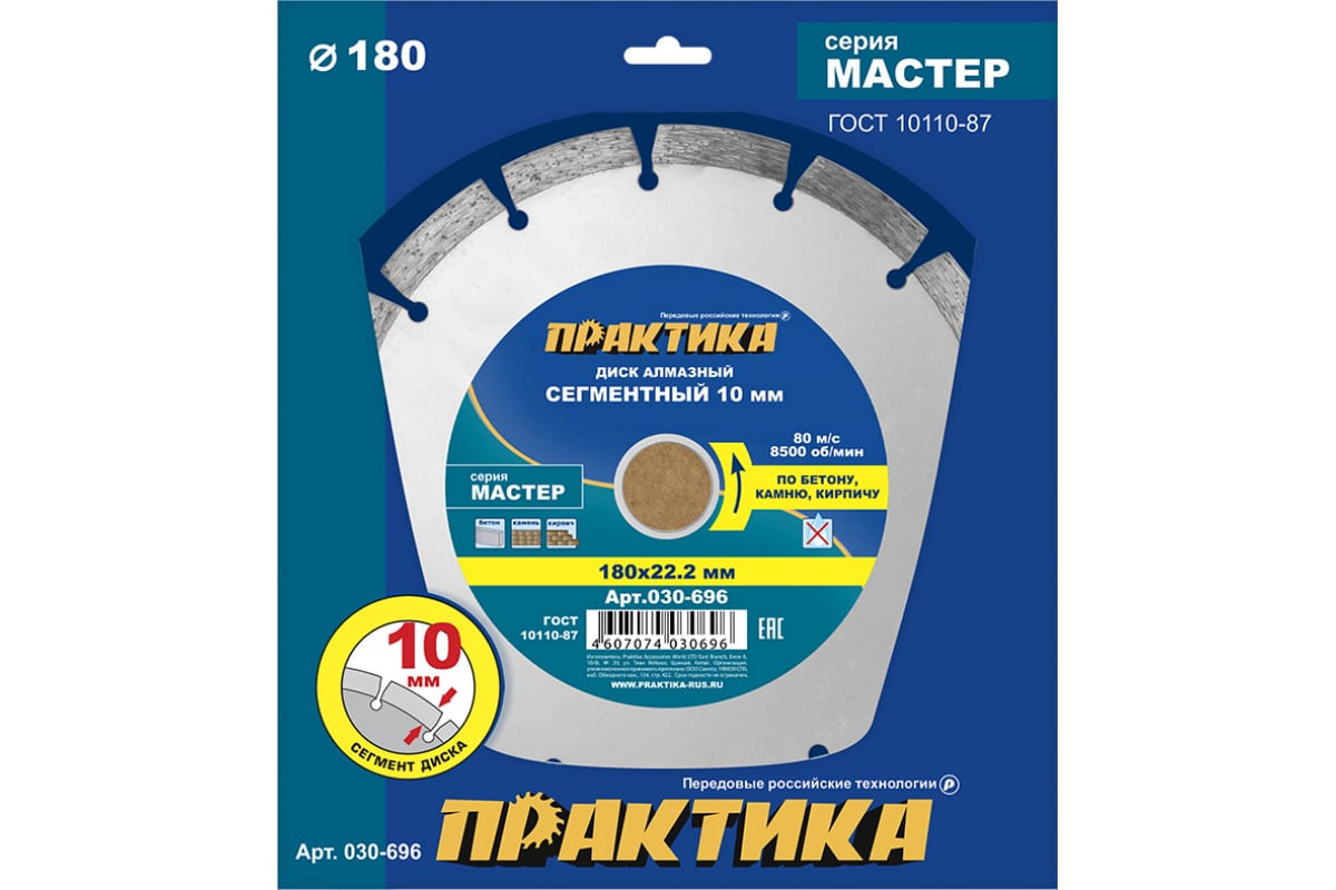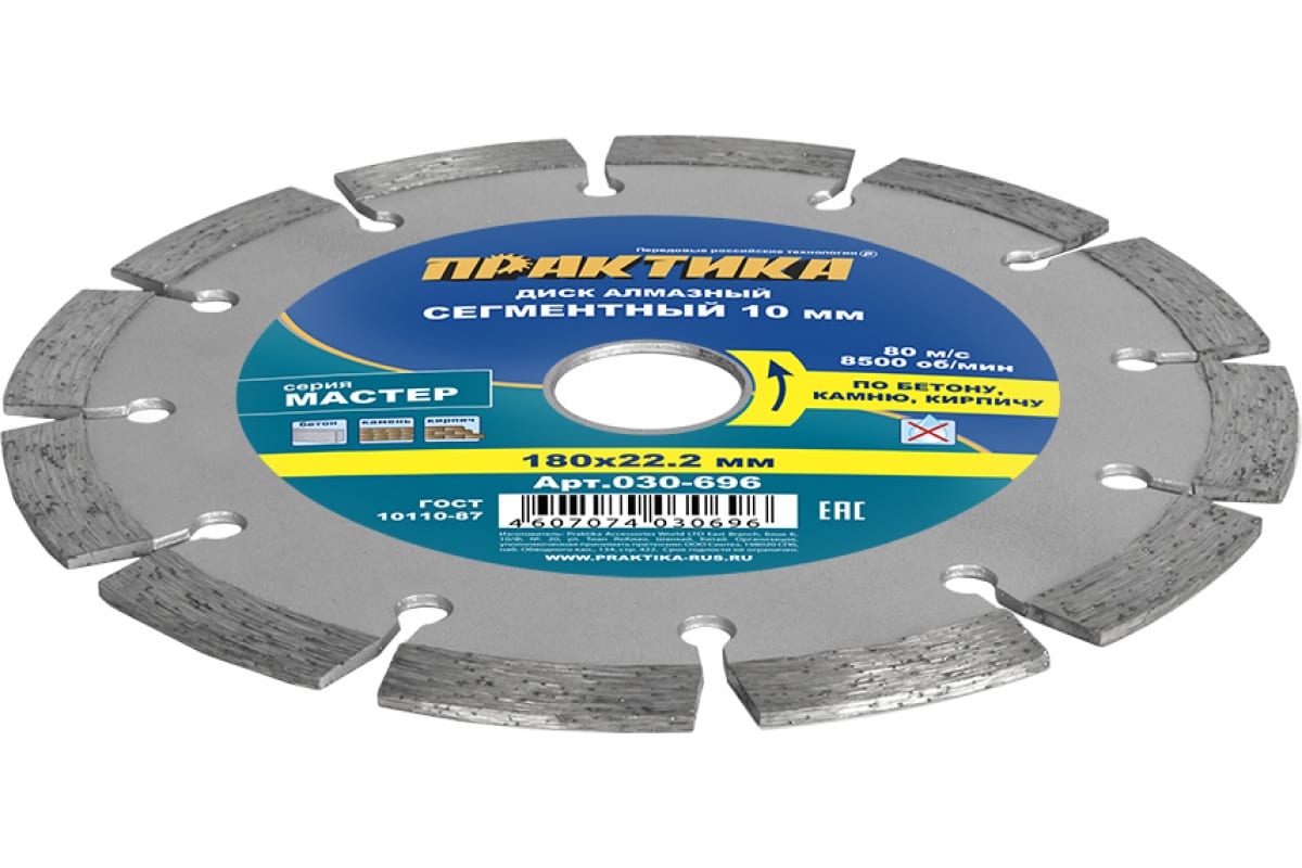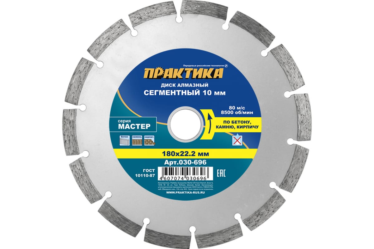 Диск алмазный сегментный Мастер (180х22.2 мм) ПРАКТИКА 030-696