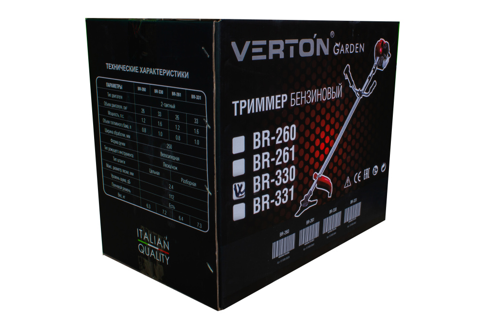 Триммер бенз. VERTON garden BR-330 (V двигателя 33 см3,мощность 1.6 л.с./1.18 кВт,цельная штанга, ремень, диск 40т,катушка) 01.5985.8641