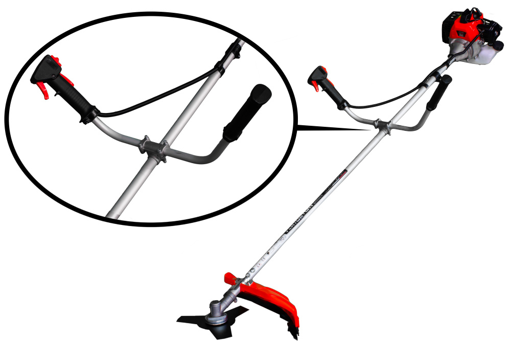 Рукоятка велосипедного типа регулируется по высоте и углу наклона, подстраиваясь под рост оператора;