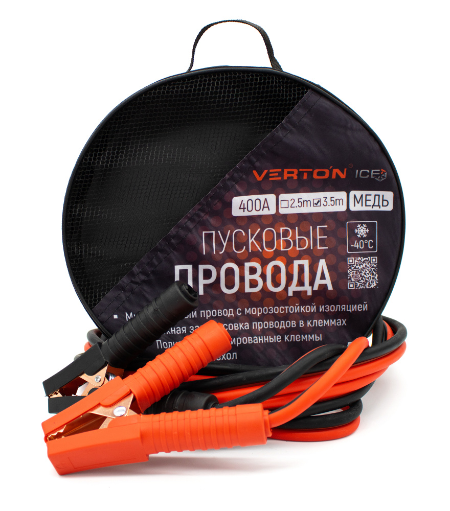 Пусковые провода VERTON Snow 400 CU (400 A, CU/TPR 3.5 м. МЕДЬ. Морозостойкие до -40 С.) 10 шт/кор. 01.9670.9913