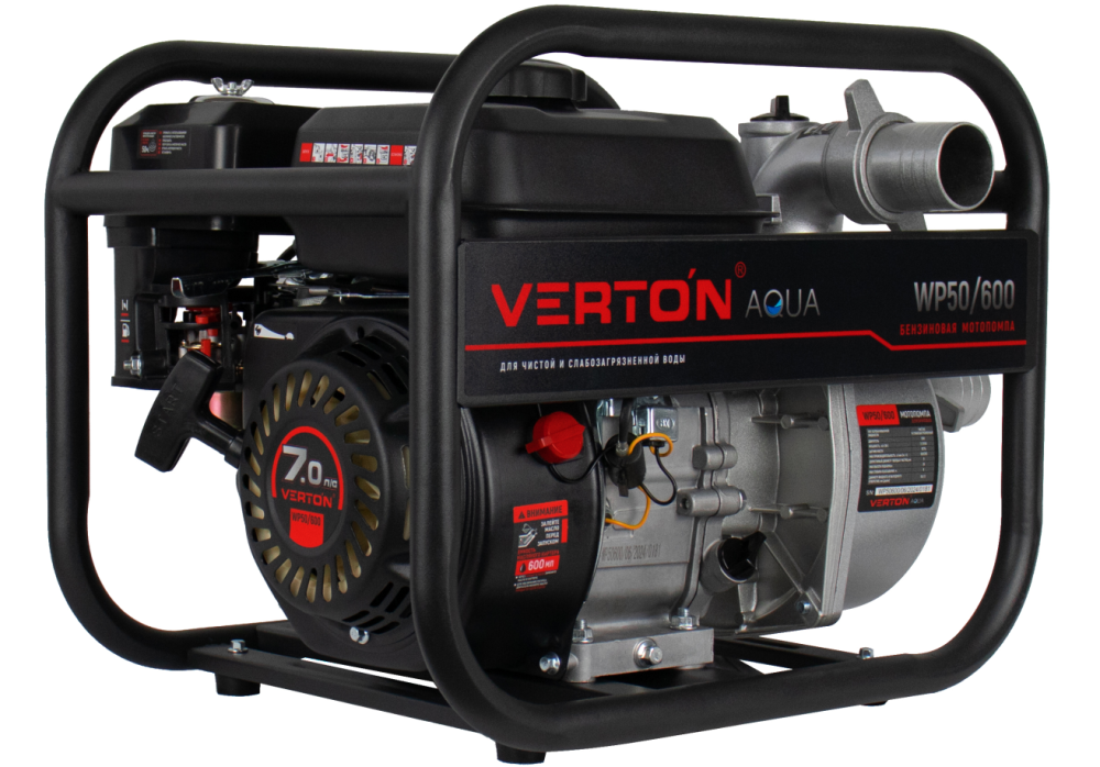 Мотопомпа Verton WP 50/600 (7л.с/212см3,50мм/2", 600л/мин,36м3/ч,h8м/26,d8мм) 01.17548.17552
