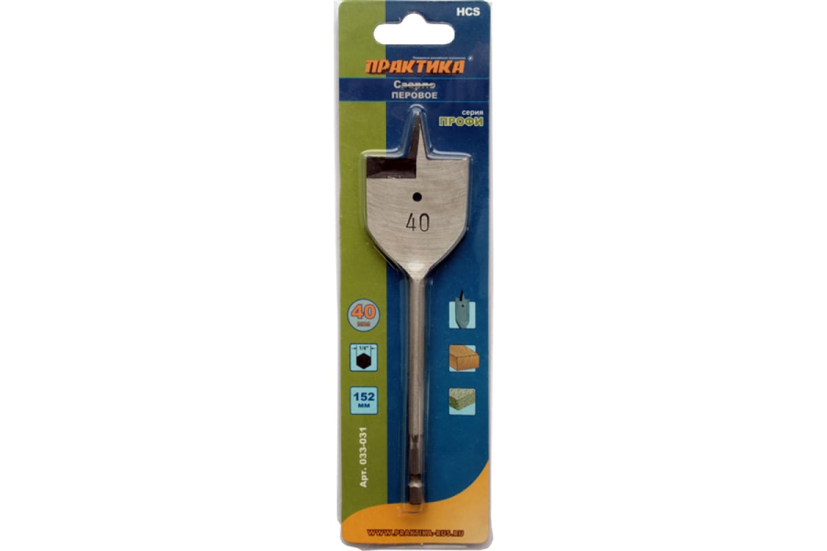 Сверло перовое по дереву (40х152 мм) ПРАКТИКА 033-031