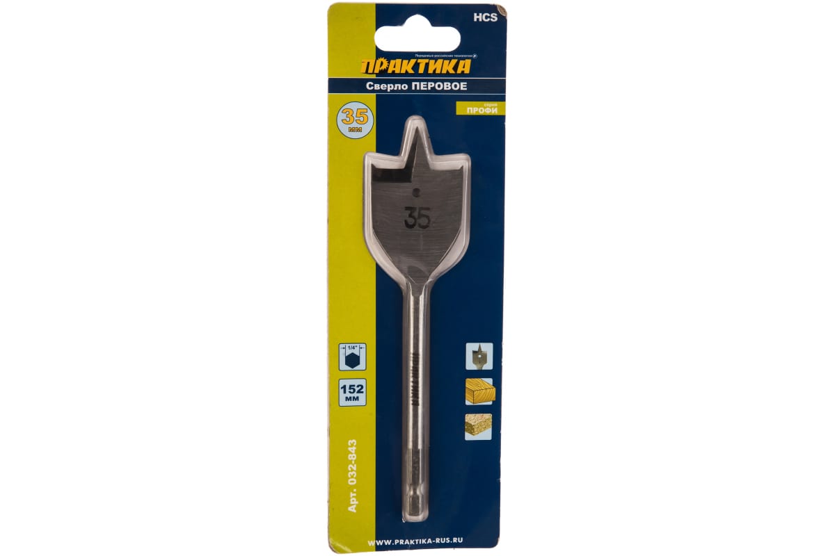 Сверло перовое по дереву (35х152 мм) ПРАКТИКА 032-843