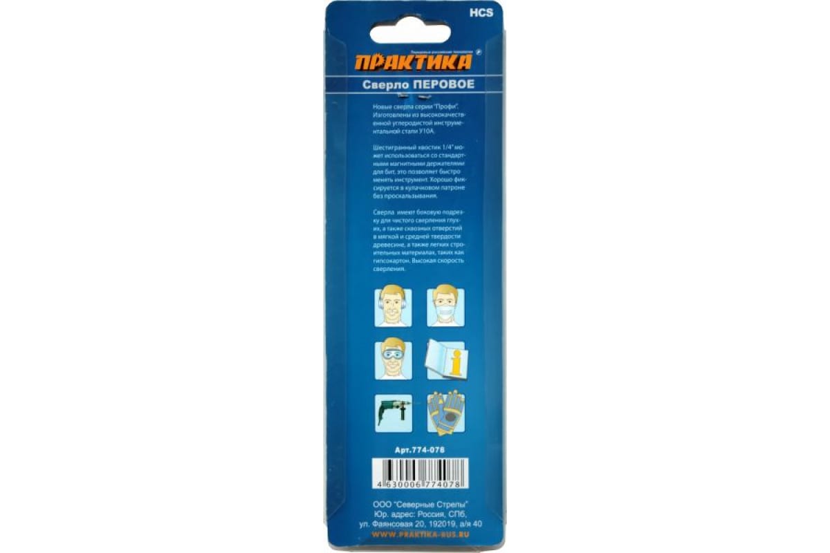 Сверло перовое по дереву (50х152 мм) ПРАКТИКА 774-078