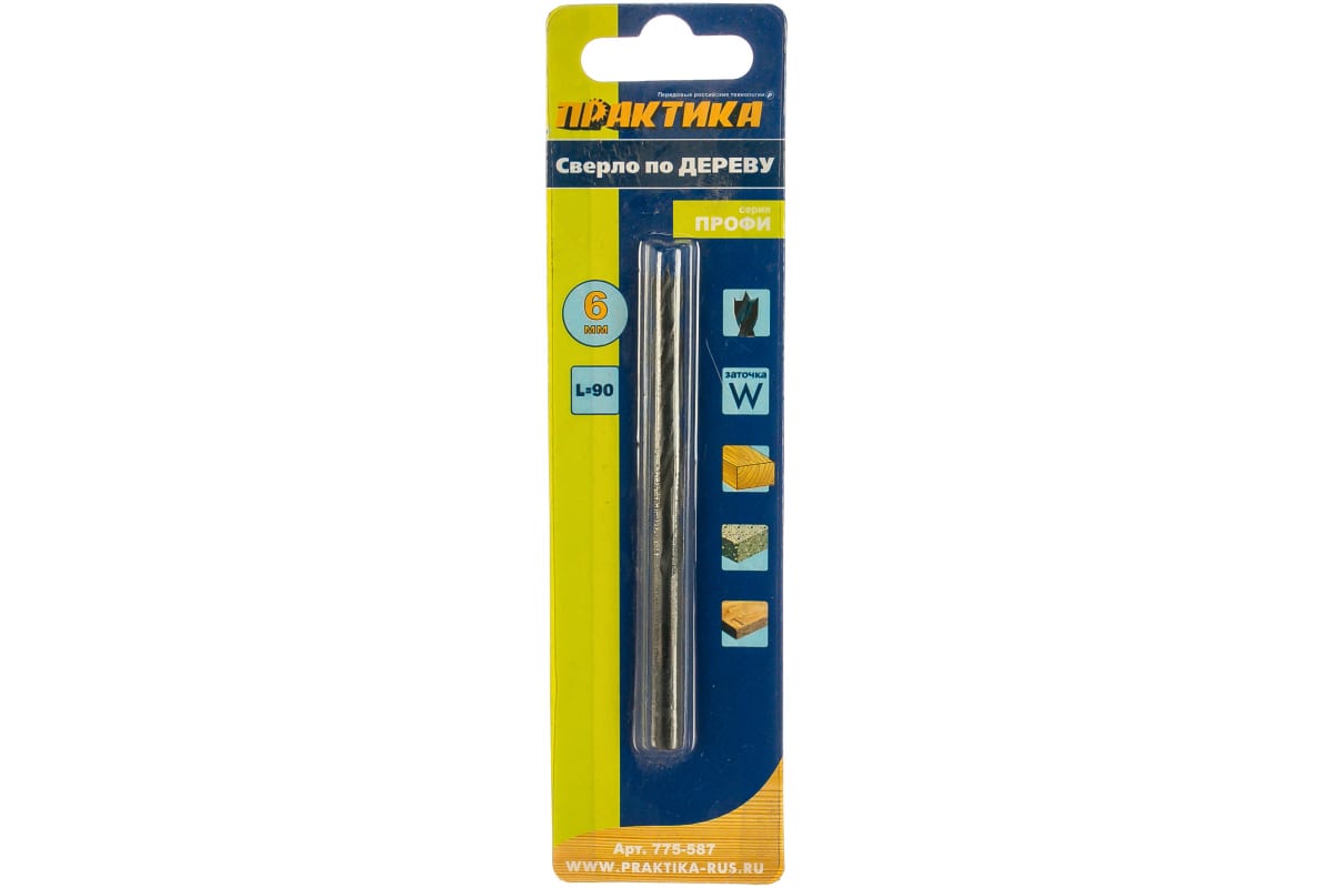 Сверло по дереву (6х90 мм) ПРАКТИКА 775-587