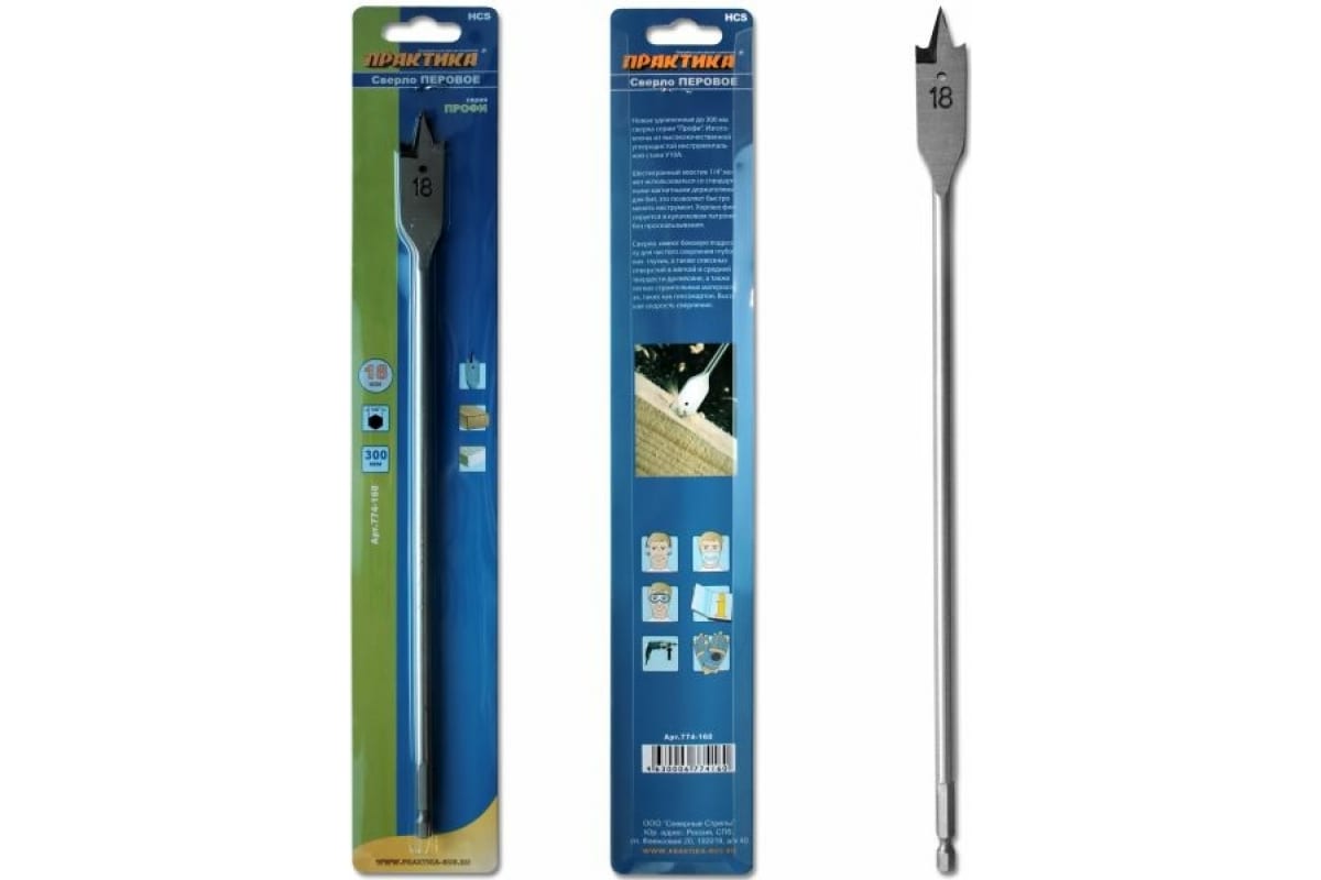 Сверло перовое по дереву (18х300 мм) ПРАКТИКА 774-160