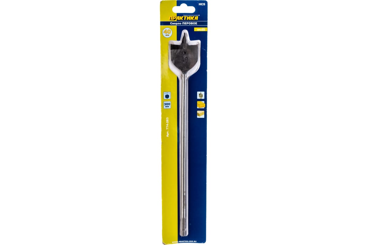 Сверло перовое по дереву (40х300 мм) ПРАКТИКА 774-283