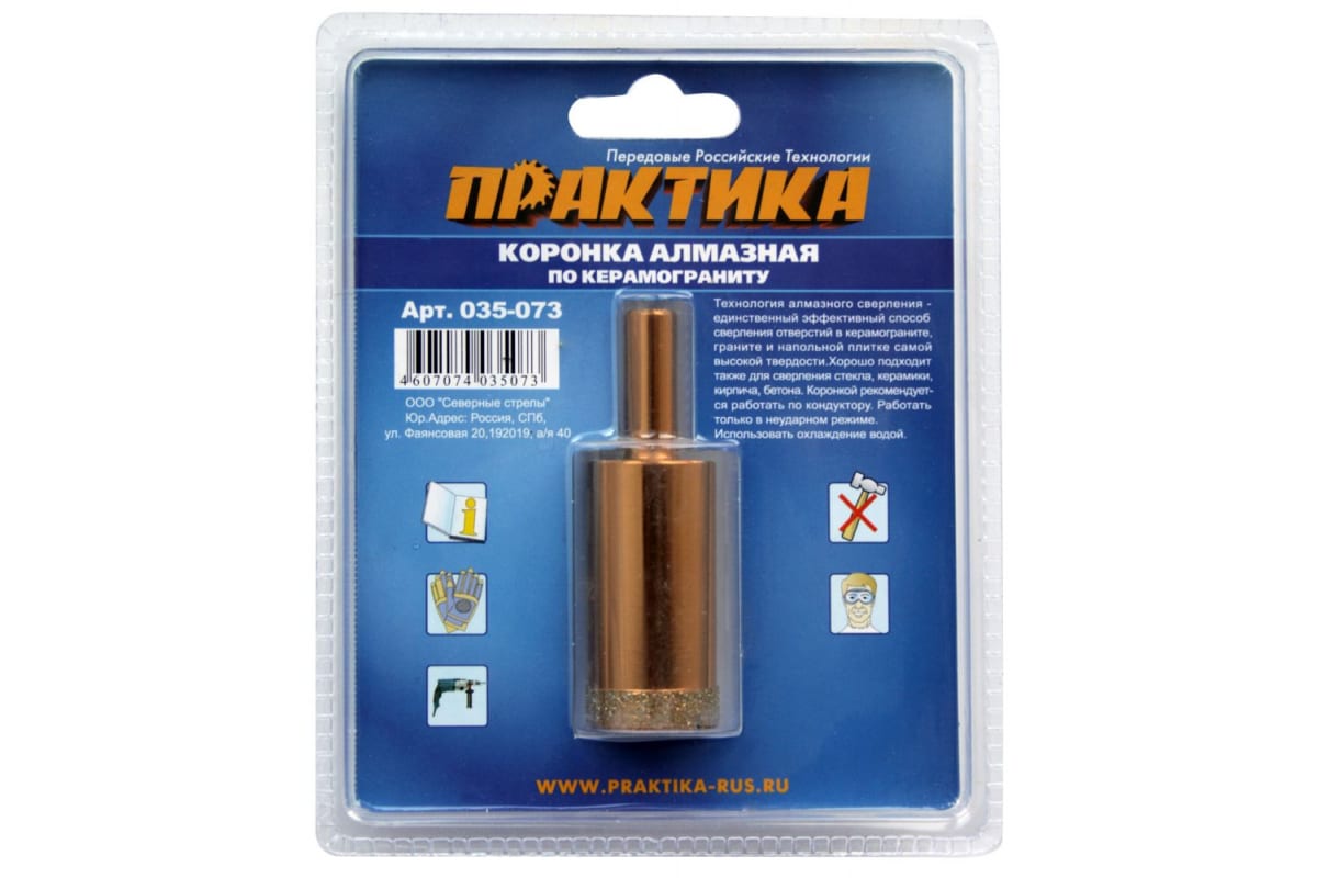 Коронка алмазная по керамограниту (25 мм) ПРАКТИКА 035-073