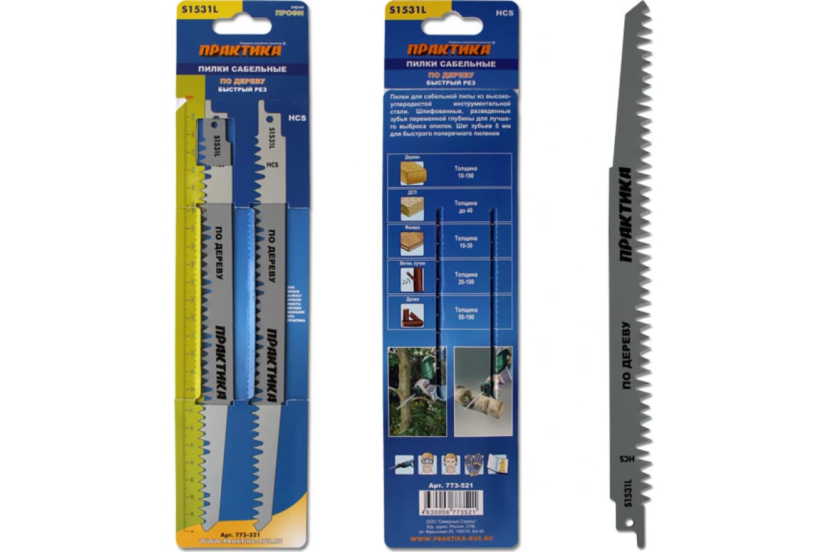 Пилки по дереву HCS S1531L (240 мм) для сабельной пилы ПРАКТИКА 773-521