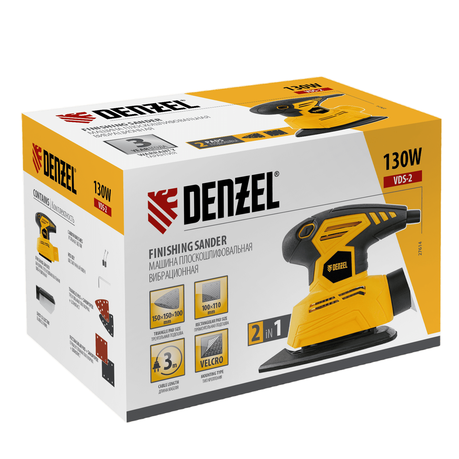Машина плоскошлифовальная вибрационная DENZEL VDS-2, 2 в 1, 130 Вт, 14000 об/мин 27614