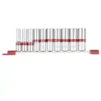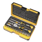 5 торцевых глубоких головок и еще 12 – разного размера, а также аксессуары для их удобного использования.