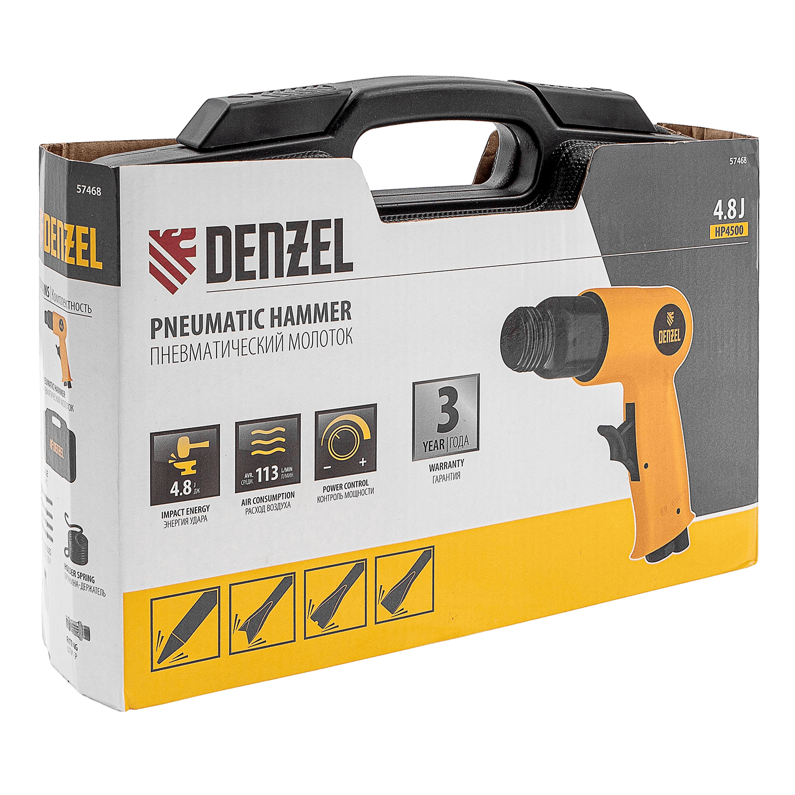 Пневматический молоток DENZEL НР4500 + набор насадок, 113 л/мин, 4500 уд/мин 57468