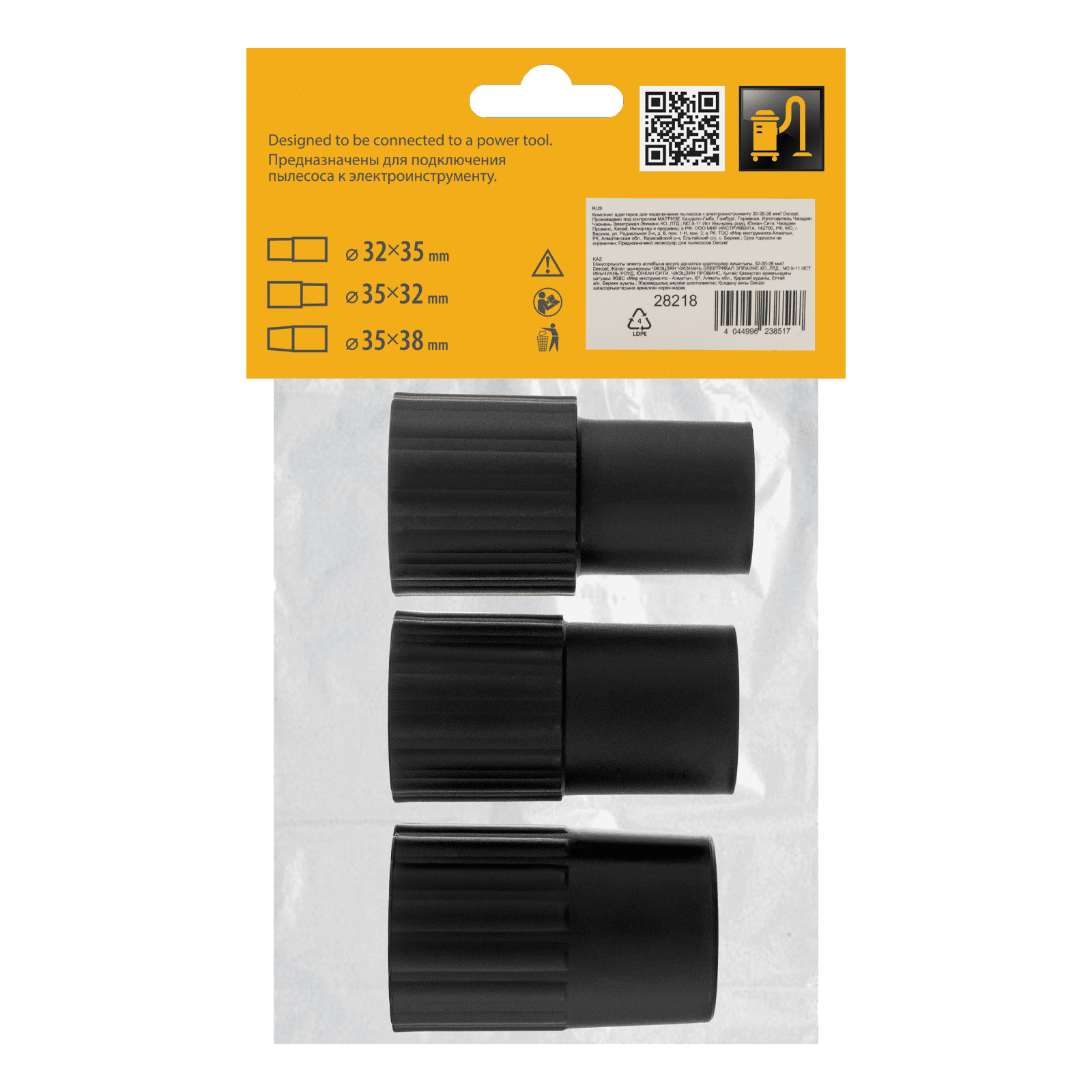 Комплект адаптеров для подключения пылесоса к электроинструменту DENZEL 32-35-38 мм 28218