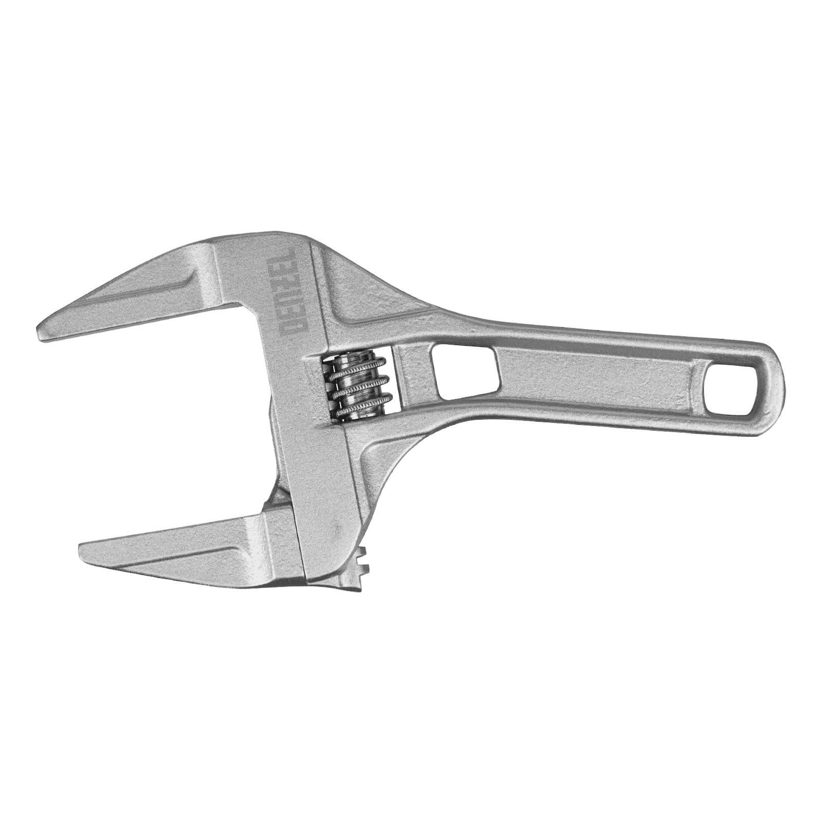 Ключ разводной алюминиевый Denzel 15755 длиной 205 мм, с тонкими губками, оптимален для монтажа и демонтажа хромированных и пластмассовых крепежных элементов. Используется при выполнении сантехнических работ.