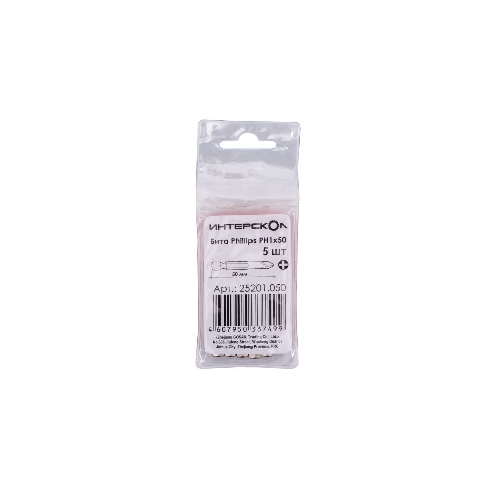 Бита ИНТЕРСКОЛ PH1, длина 50 мм, хвостовик 1/4", 5 шт., 25201.050