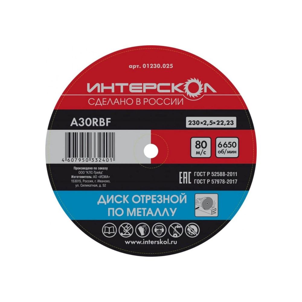 Диск отрезной по металлу ИНТЕРСКОЛ , 01230.025