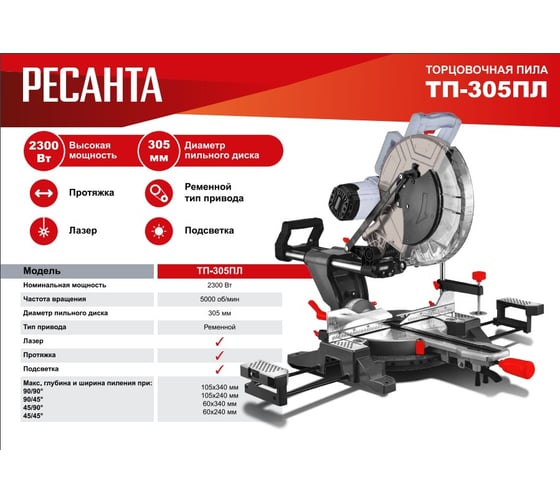 Торцовочная пила Ресанта ТП-305ПЛ 75/18/6